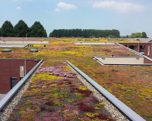 Op het nieuwgebouwde Cultureel Educatief Centrum in Biddinghuizen heeft SIGHT Landscaping een vegetatiedak van ca. 3.300 m2 gerealiseerd. Er is een gevarieerd mengsel van diverse soorten sedum en kruiden aangebracht, wat een mooi kleurenpalet laat zien.