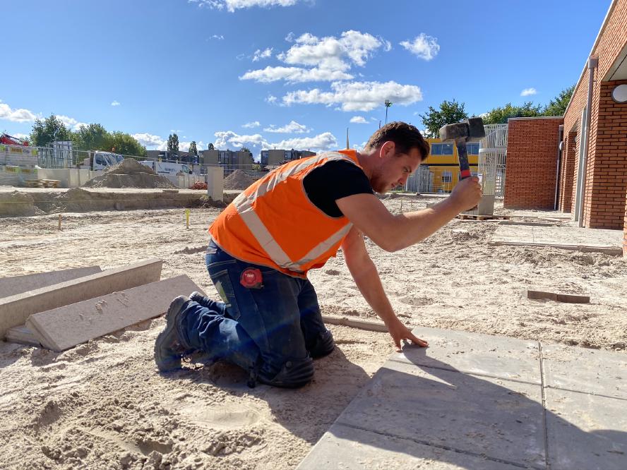 Jij zorgt ervoor dat ondergrond en fundering goed zijn voorbereid: Eventueel oude bestrating verwijder je vakkundig, waarna je een zandbed aanbrengt en egaliseert.